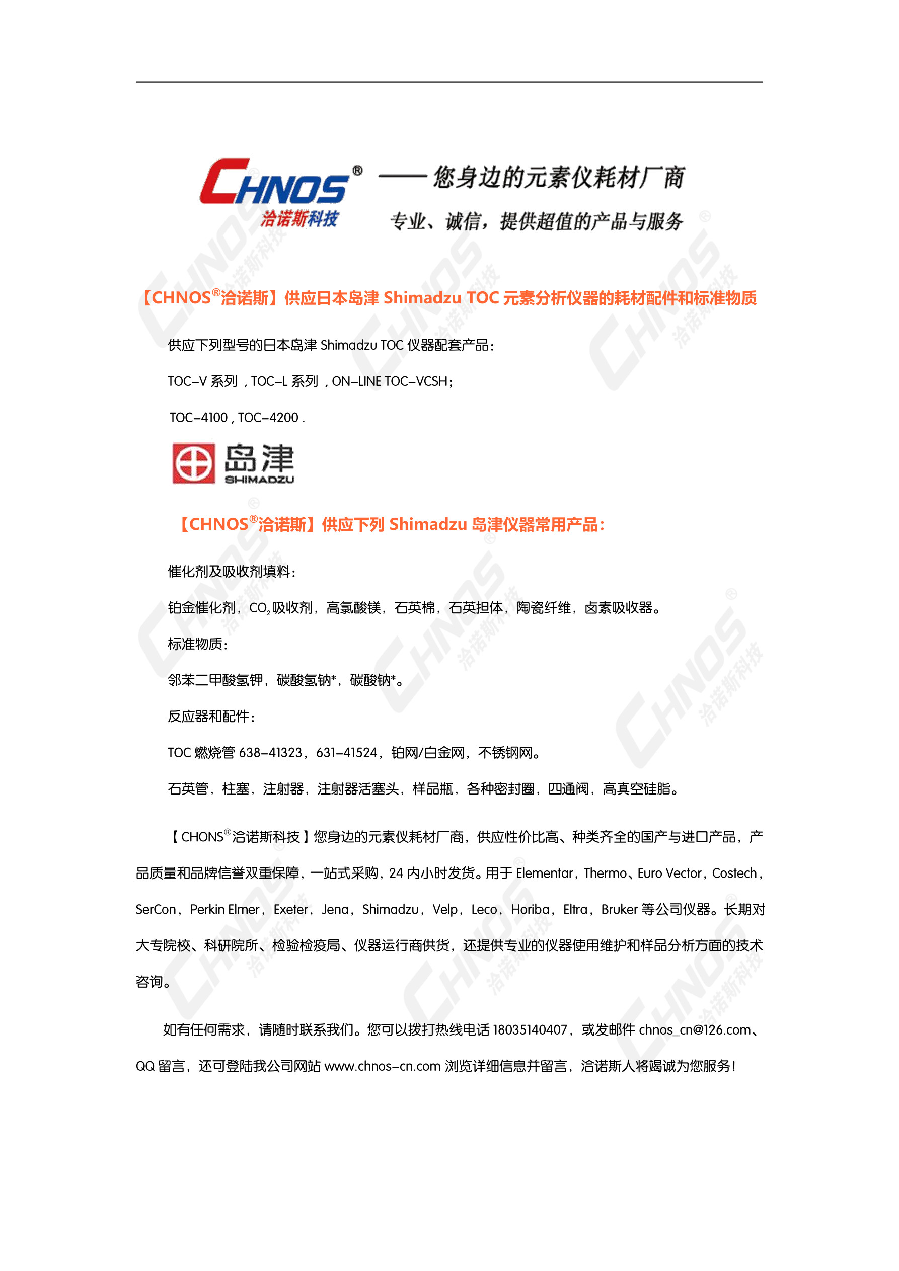 供應日(rì)本島津Shimadzu TOC儀器(qì)的(de)常用(yòng)耗材配件(jiàn)及标準物(wù)質